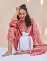 Cotton Gift Bag with Ribbon Drawstring Soft White/Rose Gold