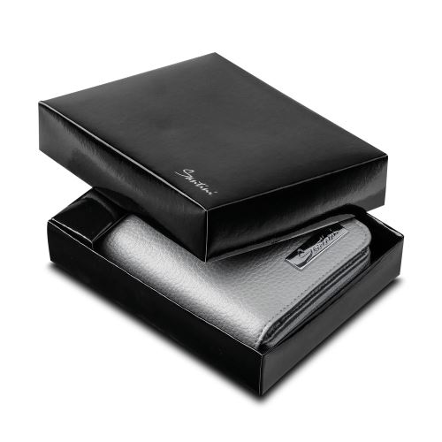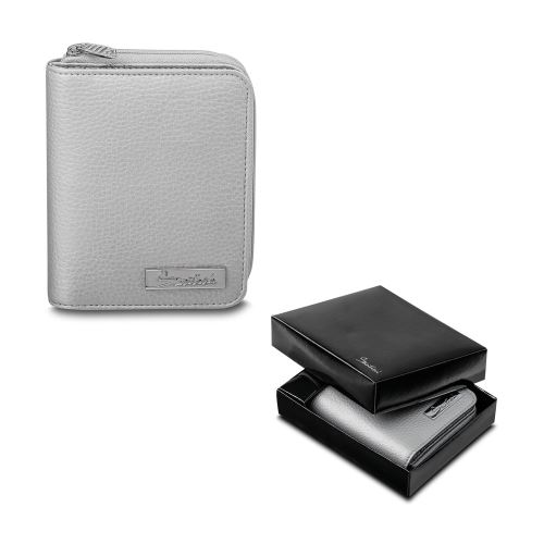 Női pénztárca bőrutánzatból, ajándékpapír dobozban. Bankjegy rekesz, aprótartó, hely 6 kártyának és további 4 rekesz. 100 x 122 x 30 mm