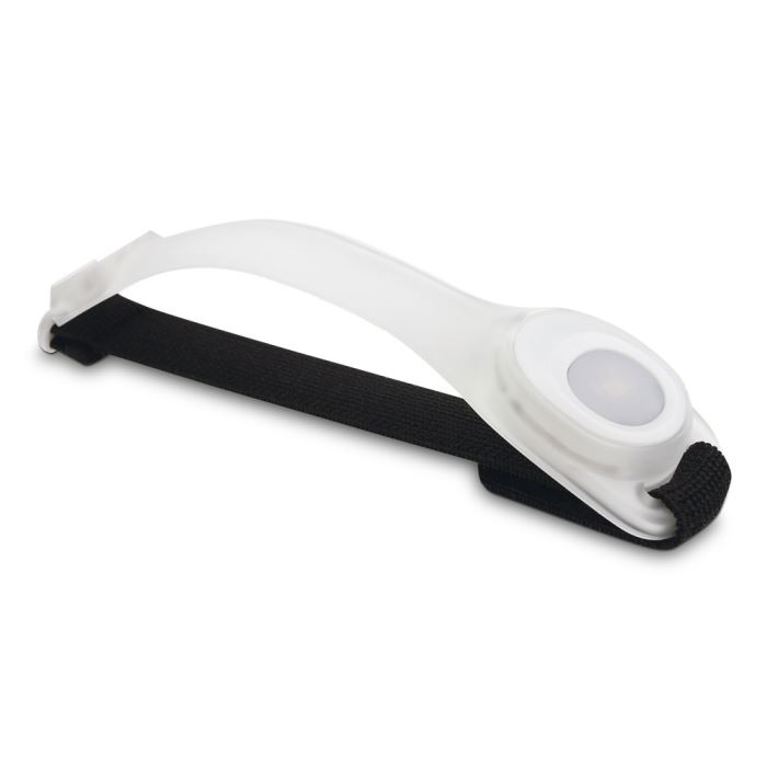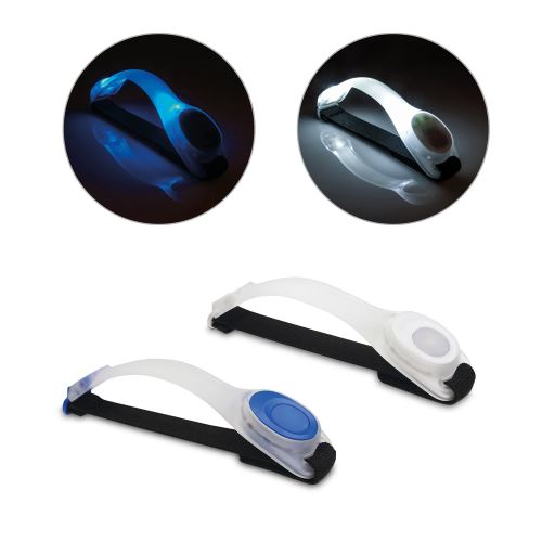 Szilikon szalag 2 LED-del és rugalmas tépőzáras hevederrel. Az elemeket (2db) tartalmazza. 185 x 13 x 37 mm