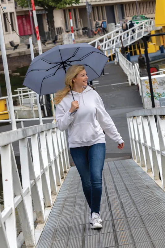 Átláthatóan a fenntarthatóságért, bizonyítottan! Ez az Impact esernyő 190T RPET nyersselyemből készült AWARE™ nyomjelzővel. Az Impact kollekció termékeinek anyagába speciális AWARE™ nyomjelző kerül ún. blokklánc technológiával ezáltal a valóban újrahasznosított összetevők használata és a kevesebb víz felhasználása garantált! Takarítson meg vizet és használjon valóban újrahasznosított anyagot! A víz megtakarításának jegyében minden eladott Impact termék után 2%-kal támogatjuk a Water.org nonprofit szervezetet. Automata, viharálló esernyő az esős napokra! Gombnyomásra nyitható és csukható. Fém váz, üveggyapot bordák, igényes bambusz fogó. Az esernyő búrájában 7.3 műanyag palack (500ml) került újrahasznosításra. A megtakarított víz mennyisége a hagyományos anyagok felhasználásával összehasonlítva értendő. A megtakarítási adatok az ún. Textile Exchange megbízható 2016-os LCA adatforrásán alapulnak.