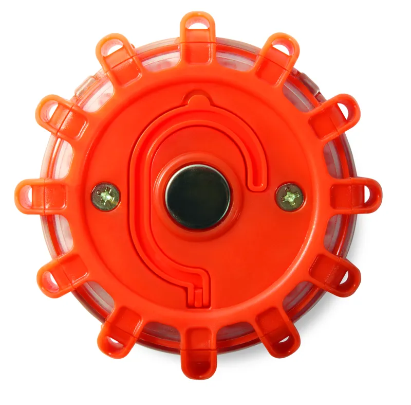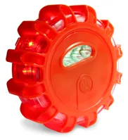 Autós vészjelző fény 5 LED-del. Világítási módok: egyenletes, csak a tetején, forgó, pislákoló és villogó. Ki- és bekapcsolás. Részben gumírozott, átlátszó ház. Mágnessel és összecsukható akasztókkal az alján. 3 db AAA elemmel működik, elem nélkül szállítjuk.