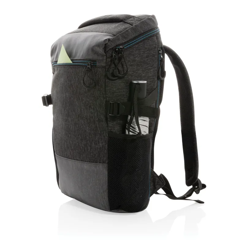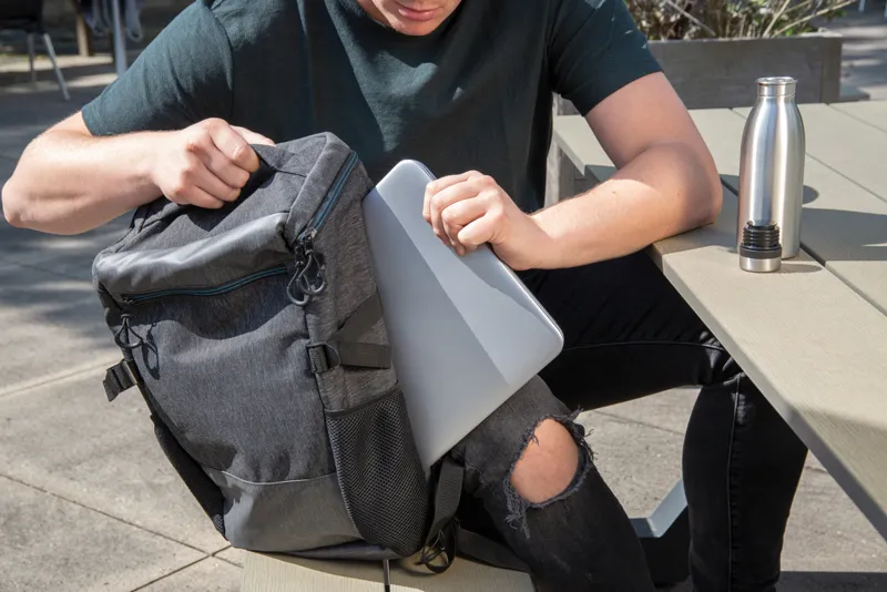900D laptop hátizsák megfelelő tárhellyel a napi használatra. Tágas főrekeszében egy 15,6"-es laptop tárolására alkalmas rekesz található valamint egy kisebb zseb kiegészítők tárolásához. Cipzárral szélesre nyitható ezáltal belseje könnyen átlátható. PVC-mentes.