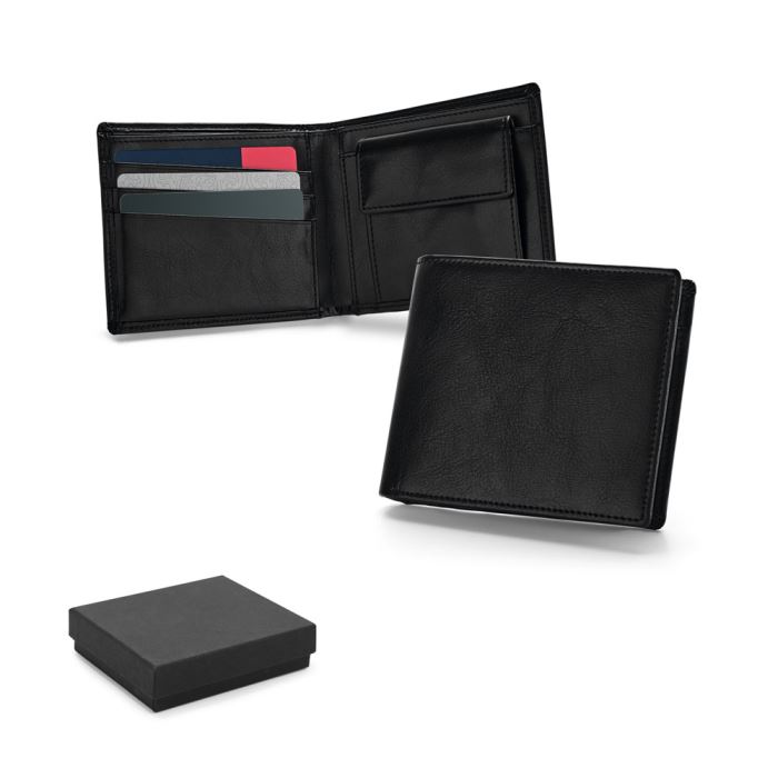 RFID -blokkolós bőr pénztárca, Rekesz 9 kártya tárolására és egy a számlák / bankjegyet számára, valamint érmetartó zseb. Ajándékdobozban szállítjuk. 110 x 92 x 13 mm | Doboz: 130 x 109 x 24 mm