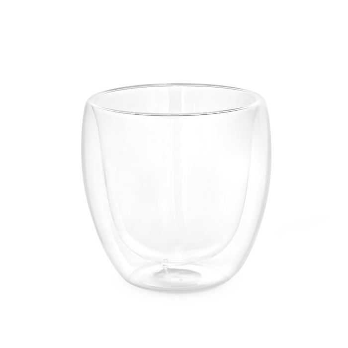 Izoterm üvegpohár duplafalú testtel és 220 mL kapacitással. Testreszabható díszdobozban szállítjuk. ø80 x 86 mm
