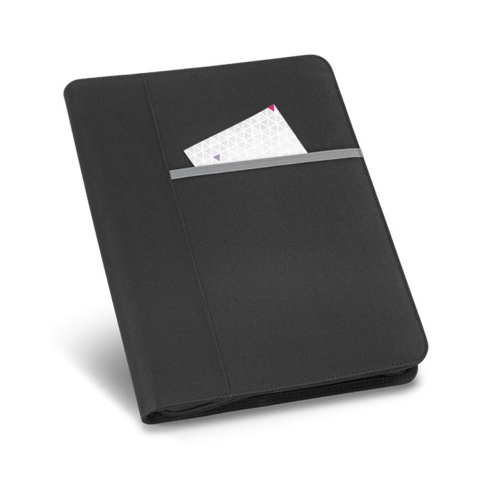 600D A4-es mappa elülső külső zsebbel és cipzárral zárható, 4 belső 20 mm-es gyűrűs hurkokkal A4-es lapok elhelyezéséhez. Ez a mappa 20 vonalas lapot tartalmaz, tolltartóval és egyéb kiegészítőtartóval (a tollat és a kiegészítőket nem tartalmazza) 260 x 340 x 35 mm