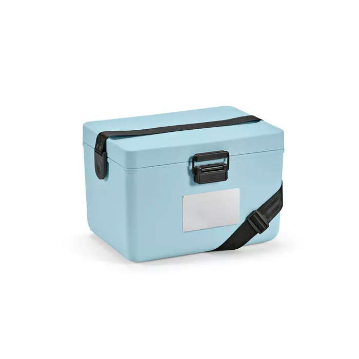 12 literes újrahasznosított műanyag hűtőtáska: Tartós, környezetbarát, praktikus szállítópánttal. Egy lappal (14 x 7 cm) szállítjuk, így személyre szabhatja logójával. Ideális az üdítők hűvösen tartásához útközben, kempingezés közben vagy egy nap a tengerparton.