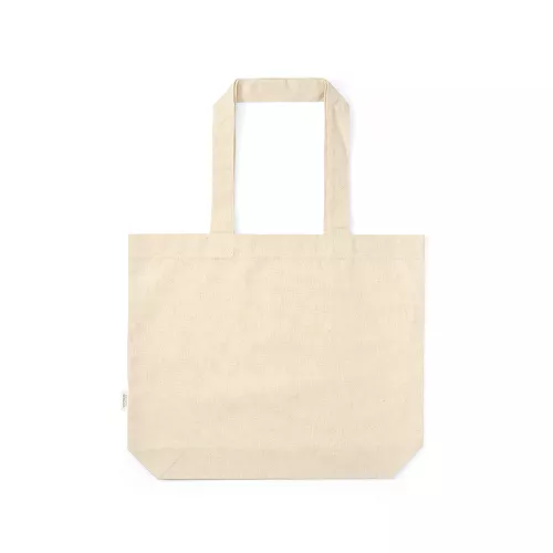 Egy fenntartható választás. Ez a táskánk 70%-ban újrahasznosított pamutból és 30%-ban újrahasznosított poliészterből készült, strapabíró 220 g/m2 anyaggal és tágas méretekkel a 10 cm-es stabil alapnak köszönhetően. A 65 cm-es fogantyú garantálja a kényelmet.