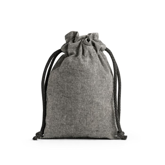 Újrahasznosított pamut ajándéktáska (70%), poliészterből (30% rPET) (140 g/m²) és pamutzsinór fogantyúk. Az újrahasznosított pamut nem festett. A nyersanyagot eredeti formájában és színében használják fel, festő- vagy fehérítő vegyszerek használata nélkül, ami hozzájárul a kisebb környezeti hatáshoz. 140 x 200 mm