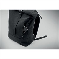 Cipzáras rolltop csavart záródású, 15 colos laptop hátizsák 70% fogyasztás előtti újrahasznosított pamutból és 30% újrahasznosított poliészterből. Elülső cipzáras zseb. Párnázott hát és vállpántok. 340 gr/m².