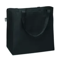 Nagy bevásárlótáska 600D RPET anyagból, hosszú fülekkel, az alján toldással.