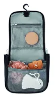 Felakasztható kozmetikai táska, poliészter anyagból. Rekeszekkel és hálós zsebbel. Tökéletes utazásh...