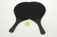 Strandjáték tapatókorongos labdákkal és búzaszalma műanyag elkapóval, rugalmas pánttal.