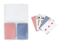 Francia kártya szett újrahasznosított PP dobozban. Két szabványos 54 lapos paklit tartalmaz piros és...