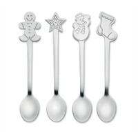 Rozsdamentes acél teáskanál készlet 4 különböző karácsonyi motívummal. Ajándékdobozban.