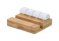 Bambusz asztali mobiltartó 4 stresszoldó gombbal, amelyek imitálják a mechanikus billentyűzet gombja...