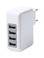 Műanyag USB fali töltő 4 kimenettel, max. kimenet 3100 mA.