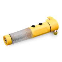 Kalapács mágnessel, autó biztonságiöv-vágóval és vakuval, 1 fehér és 3 piros LED-del. 2 db AA-s elem...