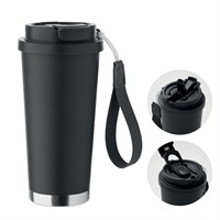 Duplafalú, újrahasznosított PP műanyag szigetelt thermo bögre műanyag ivófedéllel és szívószállal, 9...