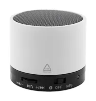 Újrahasznosított alumínium borítású vezeték nélküli hangszóró, beépített akkumulátorral. USB töltőká...