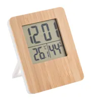 Időjárás állomás és digitális óra bambusz előlappal. Funkciók: ébresztőóra, naptár, hőmérő és párata...