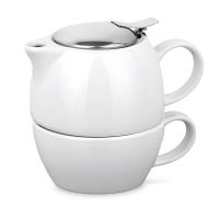 2 az 1-ben porcelán teáskészlet - 440 mL-es teáskanna rozsdamentes acél szűrővel és 280 mL-es csészé...