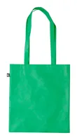 Laminált RPET bevásárlótáska hosszú hordfüllel, 100 g/m². Megkülönböztető RPET címkével.