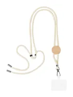 Állítható hosszúságú, pamut mobiltartós nyakpánt bambusz címkével, telefontartó betéttel és fém kara...