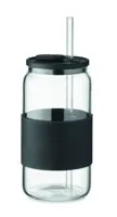 Boroszilikát üvegből készült pohár, szilikon fedéllel és markolattal, boroszilikát üveg szívószállal...