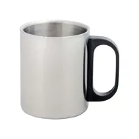 Duplafalú rozsdamentes acél bögre PP füllel. Űrtartalom: 300 ml.