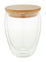 Duplafalú boroszilikát üveg bögre bambusz fedéllel. Űrtartalom: 250 ml.