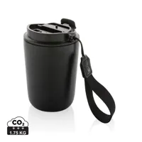 Rozsdamentes acélpohár fekete PP műanyag belsővel és fedéllel, 0,30 l űrtartalommal. A fedél tökélet...