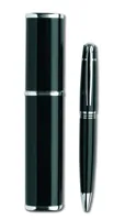 Fényes, lakkozott kivitelű fém golyóstoll karton díszdobozban. Feketén író betéttel.