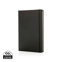 600D RPET poliészter borítású jegyzetfüzet 100 vonalas lappal, könyvjelzővel és gumipánttal. A5 mére...
