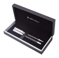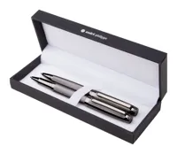 Görgős és golyóstollkészlet rozsdamentes acéltesttel (53% rSS) és klippel. A tollak feketén fognak, ...