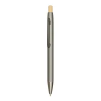 Újrahasznosított alumínium golyóstoll fémes felületű részekkel. Kék tollbetéttel szállítjuk.