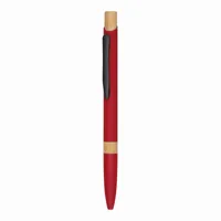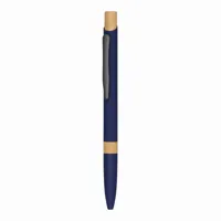 Újrahasznosított alumínium golyóstoll gumírozott felülettel, bambusz gombbal és króm részekkel. Spec...