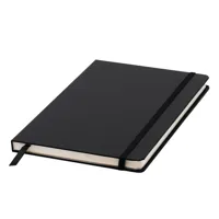 <b>ATTENDANT jegyzetfüzet A5-ös méretben</b>, lekerekített sarkokkal, gumi záró szalaggal, beépített...