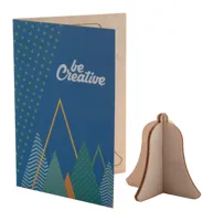 Egyedi grafikával, papírból készült, mindkét oldalán emblémázható karácsonyi üdvözlőlap, fából készü...