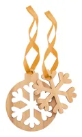 Bambusz furnérból készült 2 az 1-ben karácsonyfadísz szett arany szalagokkal. A szalagokat a dísz me...
