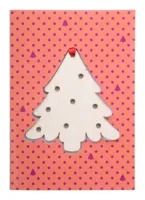 Egyedi gyártású, összehajtható papír karácsonyi üdvözlőlap egyedi grafikával és kivágott karácsonyfa...