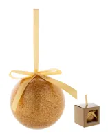 Csillogó, gömb alakú karácsonyfadísz PU habból, szalaggal. Gömb átmérője: 75 mm. Hozzáillő színű pap...