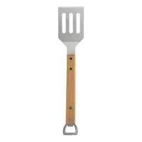 Rozsdamentes acél grillező spatula fa nyéllel és üvegnyitóval.