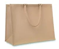 Juta strandtáska azonos színű fülekkel és elülső zsebbel.