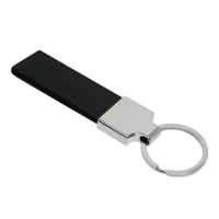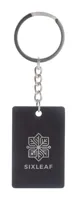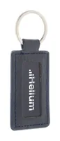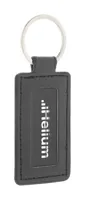 Téglalap alakú, újrahasznosított PU bőr kulcstartó fém karikával és gumírozott rozsdamentes acél log...