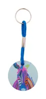 Kör alakú, rétegelt nyírfából készült kulcstartó színes poliészter zsinórral és full colour nyomtatá...