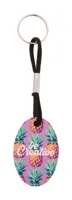 Ovális, rétegelt nyírfából készült kulcstartó színes poliészter zsinórral és full colour emblémázáss...