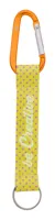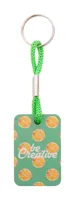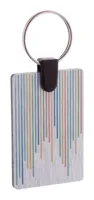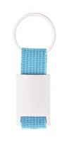 Téglalap alakú fém kulcstartó színes poliészter szövött pánttal.