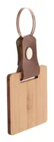 Bambusz furnérból és PU bőrből készült kulcstartó fém kulcskarikával.