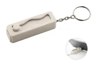 Bambusz és újrahasznosított ABS műanyag mini elemlámpa 1 LED-del és fém kulcstartóval. Gombelemmel s...