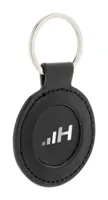 Kör alakú, újrahasznosított PU bőr kulcstartó fém karikával és gumírozott rozsdamentes acél logóval....